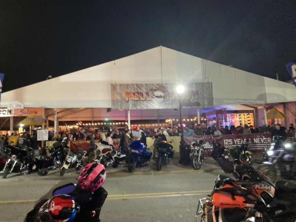 ずっとバイクがメインストリートを走っていて、ずっとバンドがそこらじゅうで演奏しています。少なくとも4ステージはありましたヨ