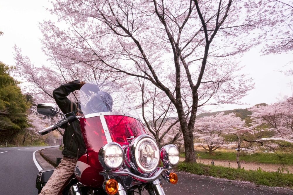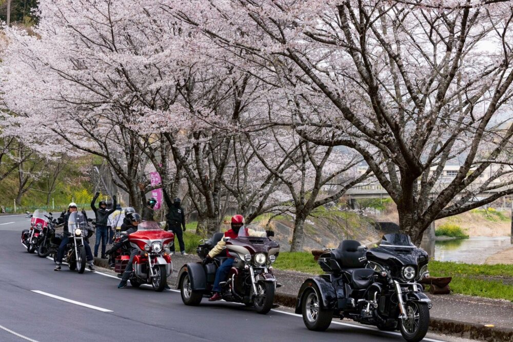 「ハーレーを降りてたちまち桜人」 (「 黎明 」浅井民子句集)
