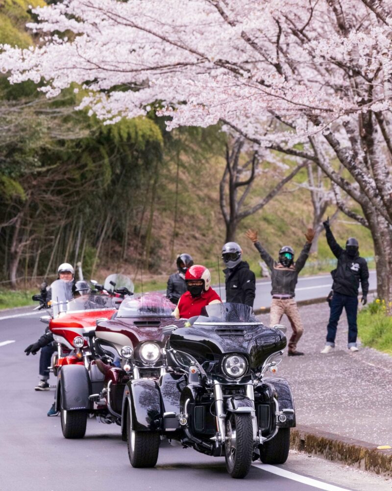 「ハーレーを降りてたちまち桜人」 (「 黎明 」浅井民子句集)