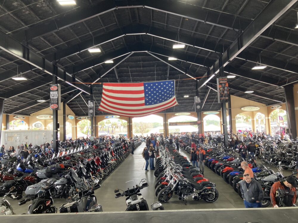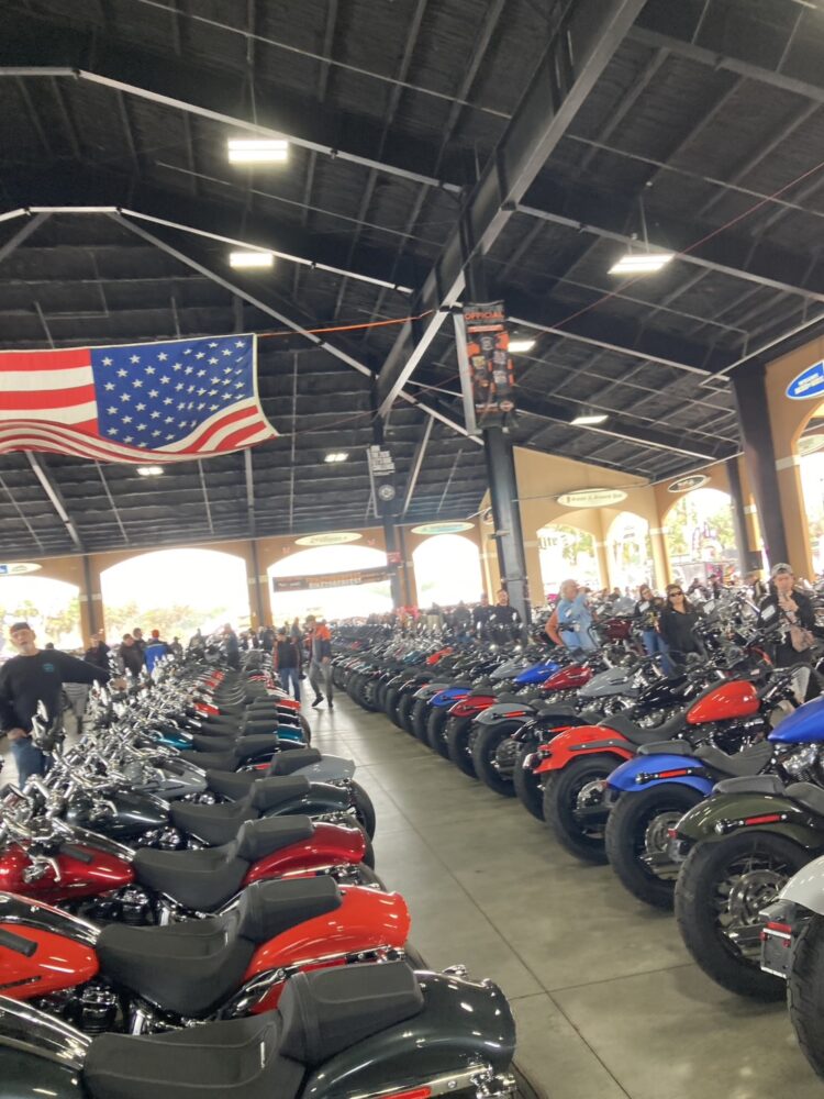 2月28日この日だけで70台(日本の平均ディーラーの年間売り上げ台数に匹敵しますよ)、デイトナバイクウィーク期間中だけで500台ハーレーを売るそうです、そんなバナナ、、、😇