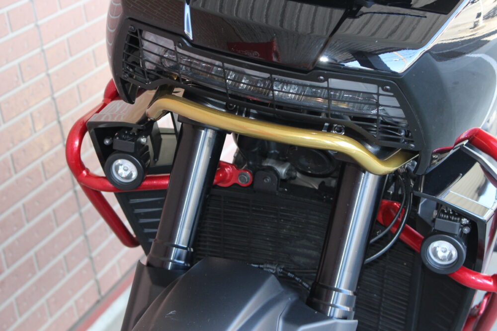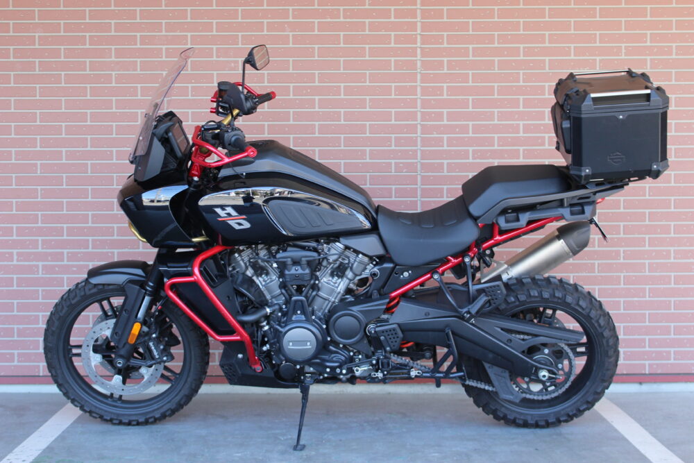 弊社カスタムパンアメリカ!「レーシングレッド」パウダー塗装でパフォーマンススタイルを確立!スクリーミンイーグルマフラー、パニアトップケース、トライジャショートナンバー、ブロックタイヤ、ケラーマンウインカー前後、ヘッドライトグリル、トライジャホグランプ、純正カバー関係、ラジエーターガード、トライジャナックルガード、マフラーガード、スキットプレート、ヒートファンガード!弊社店長の制作した渾身の一台!